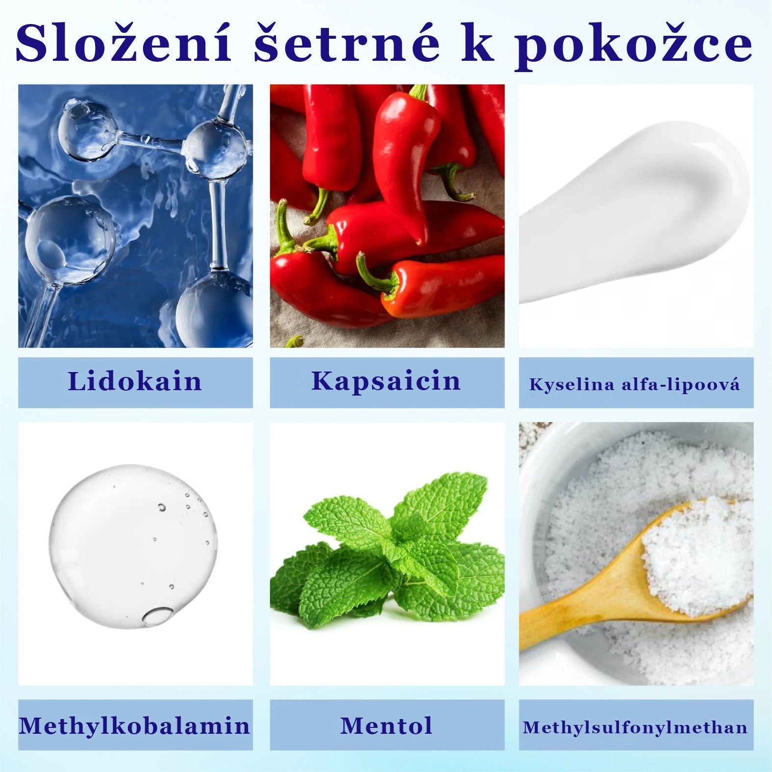 Poskytuje okamžitý chladivý pocit, který zklidňuje pálení, brnění a povrchové nepohodlí.